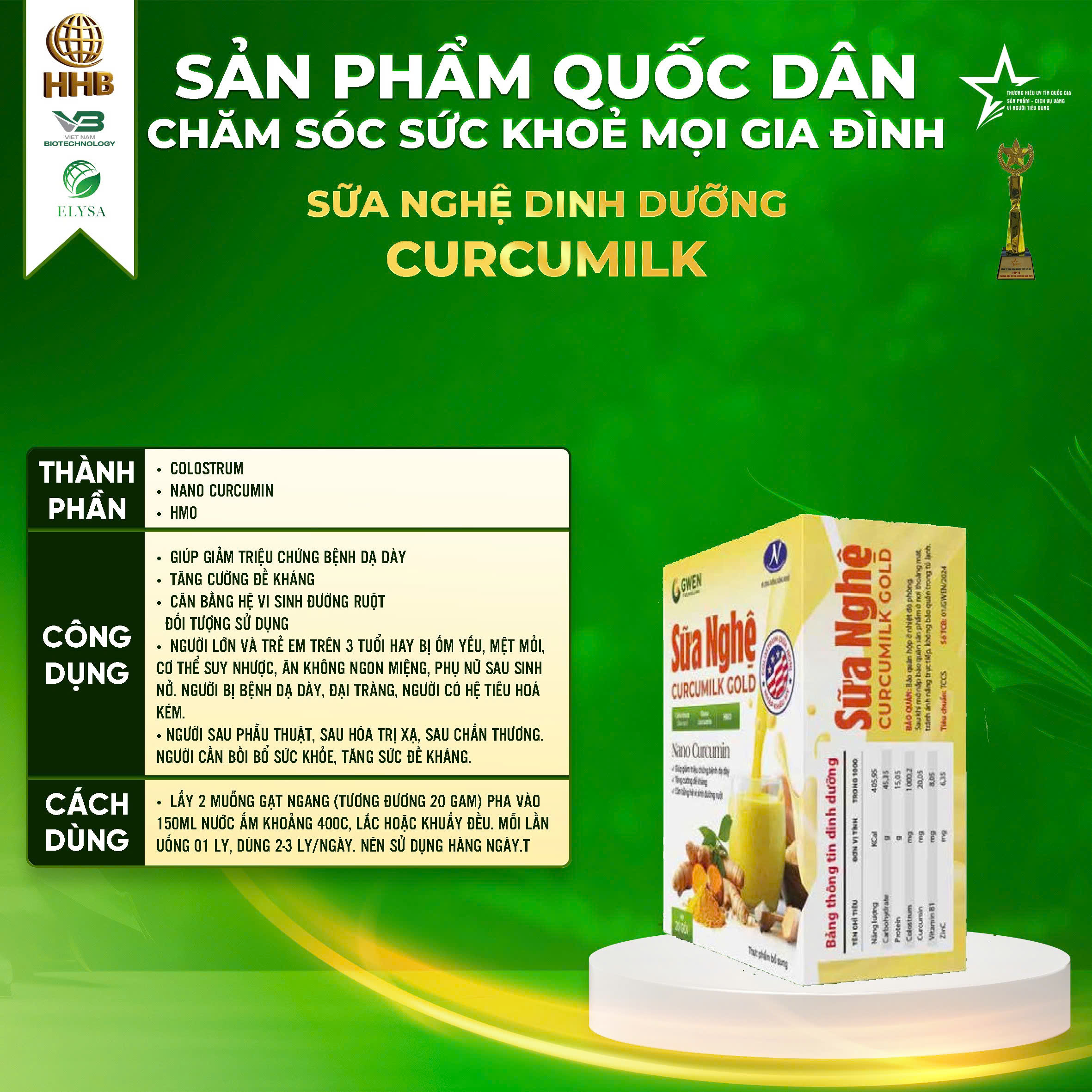 Sữa nghệ Curcumilk Gold HHB, được sản xuất tại nhà máy đạt tiêu chuẩn, là lựa chọn hoàn hảo cho những ai cần bổ sung dinh dưỡng, hỗ trợ tiêu hóa, tăng cường miễn dịch và phục hồi sức khỏe. Với công thức cải tiến chứa Nano Curcumin, sản phẩm đặc biệt phù hợp với người đau dạ dày, rối loạn tiêu hóa, suy nhược cơ thể và người lớn tuổi.
